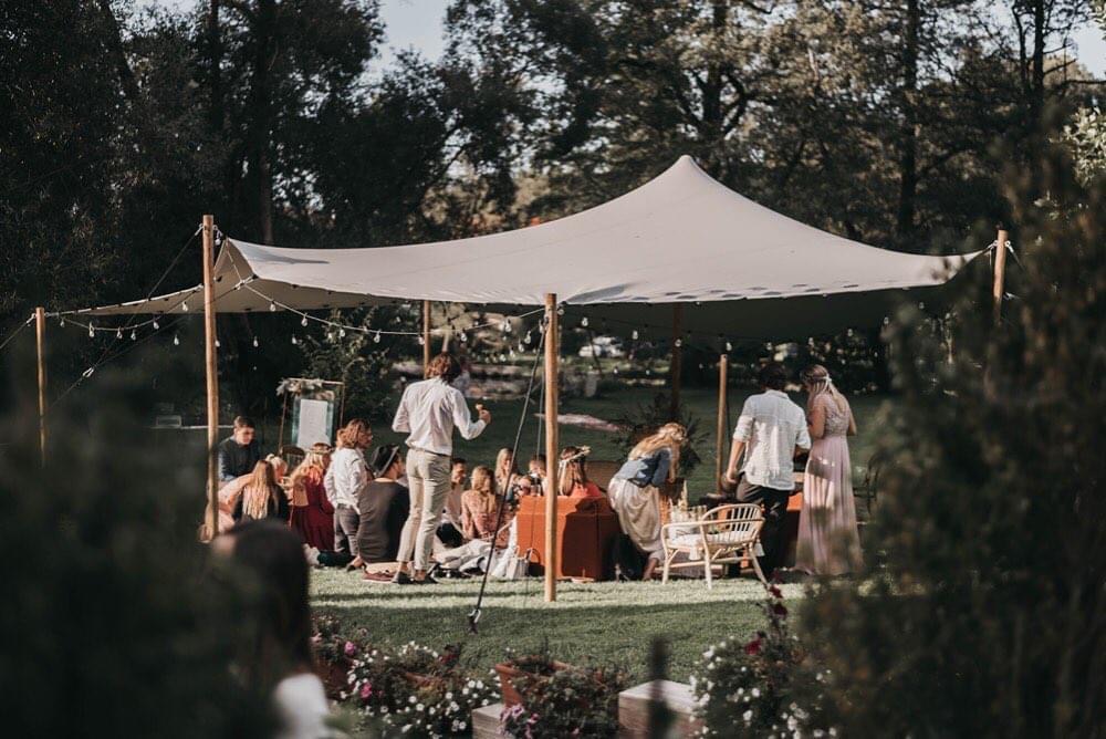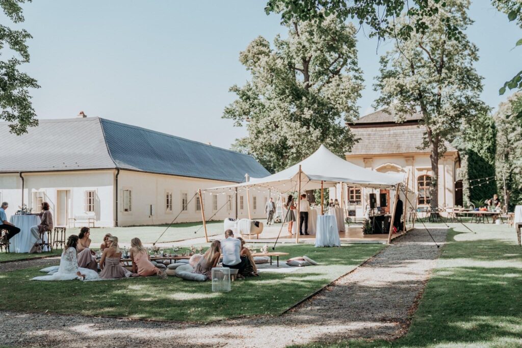 Elegantní beduínský stan ve světle šedé (platinum) barvě, která krásně ladí s přírodou, městem i slavnostními dekoracemi. Vzdušný, otevřený prostor o velikosti 7,5 × 10 m ideálně poslouží jako zázemí pro komornější svatbu, zahradní slavnost, chill-out zónu nebo třeba místo pro doprovodný program větší akce.