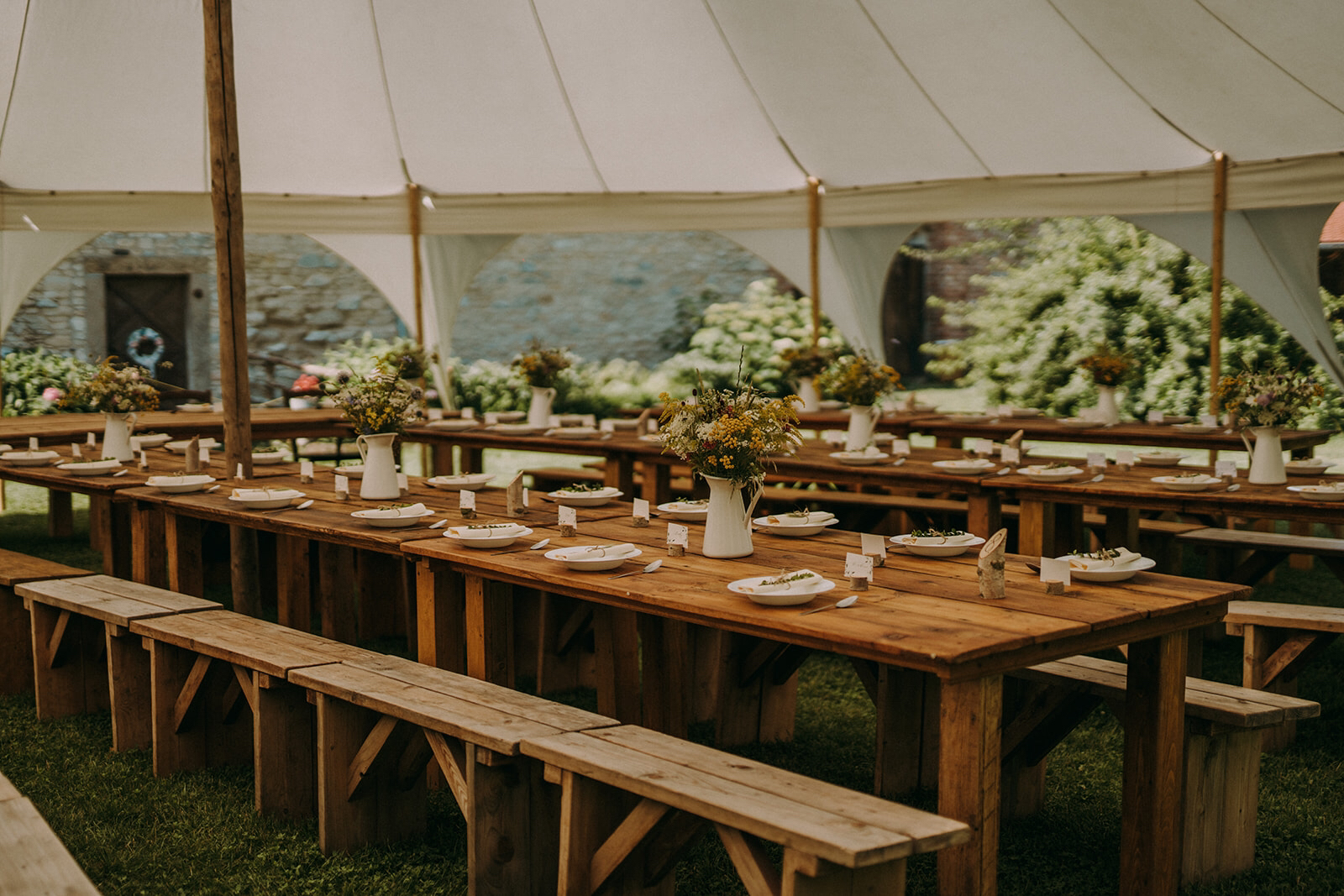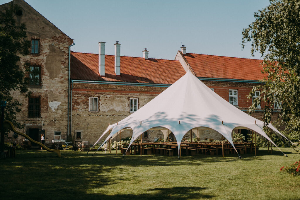 Skvěle se hodí na svatební obřady, slavnostní hostiny nebo jako středobod menšího festivalu či soukromé garden party. Díky kruhovému tvaru působí prostor velmi harmonicky a přirozeně zve ke sdílení – ať už tance, jídla nebo zážitků. Bavlněná plachta a dřevěné sloupy dodávají stanu lehkost i rustikální šmrnc. Obzvlášť krásně vynikne v kombinaci se světelnými girlandami, dřevěnou podlahou a dekoracemi – ať už ve dne, nebo večer, krásný objekt ochrana proti dešti i slunci.